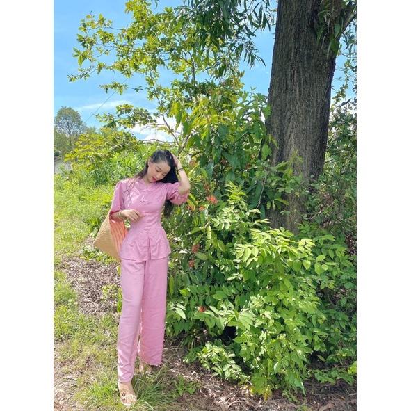 Quần áo phật tử đồ lam đi chùa mẫu xéo nơ An Yên