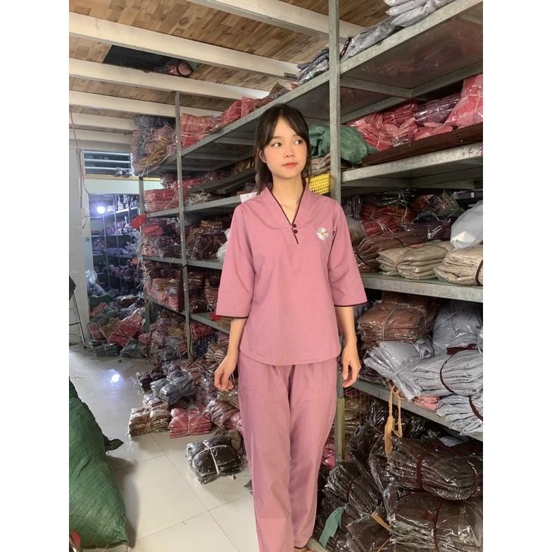 Quần áo phật tử đồ lam đi chùa mẫu xéo nơ An Yên