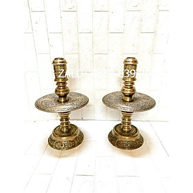 Cặp chân nến hoa văn đồng nguyên chất hai công nghệ cao 38cm