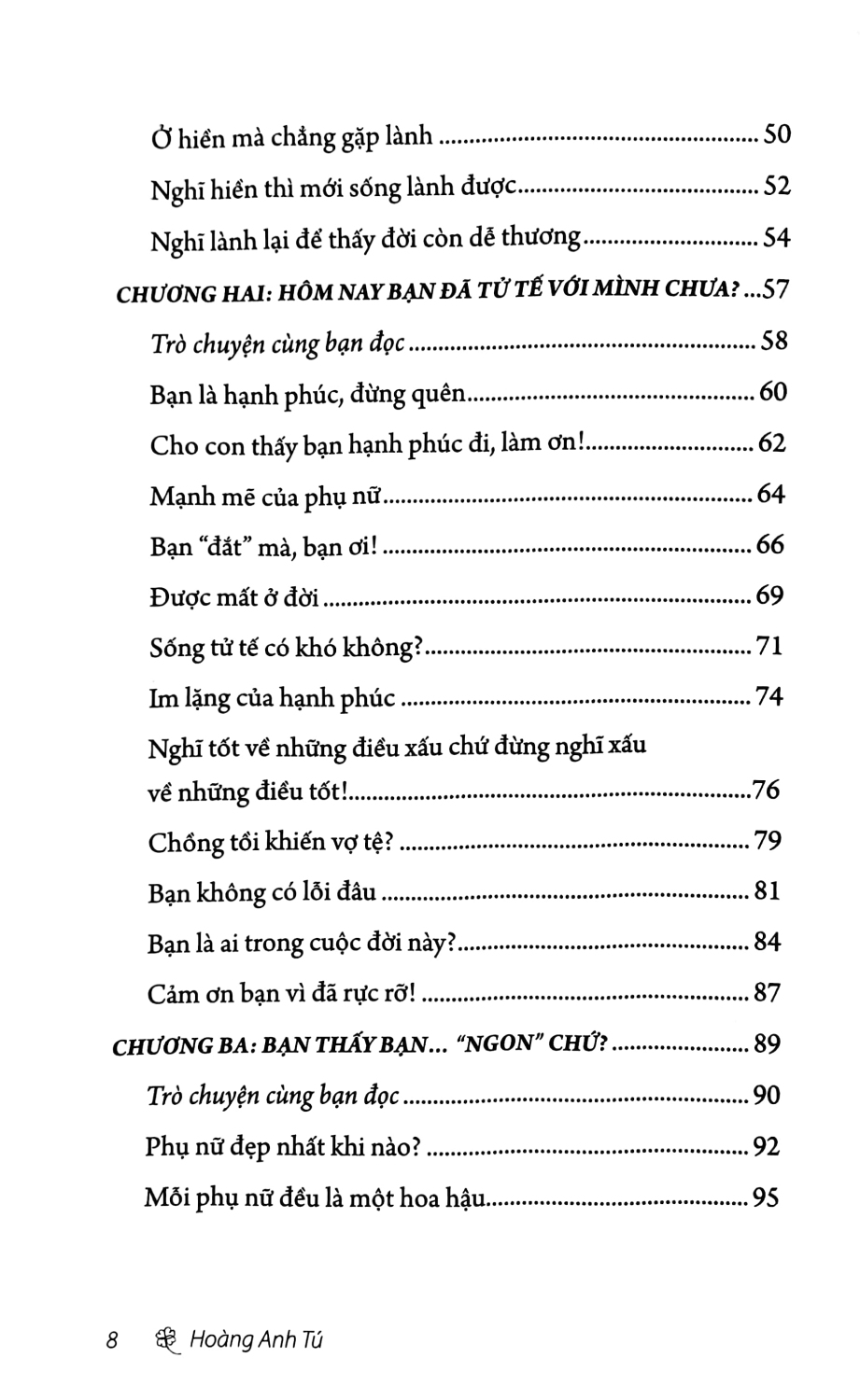 Cuốn sách như một "liều thuốc" chữa lành trái tim phụ nữ với 6 chương –100 bài viết xoay quanh các vấn đề: