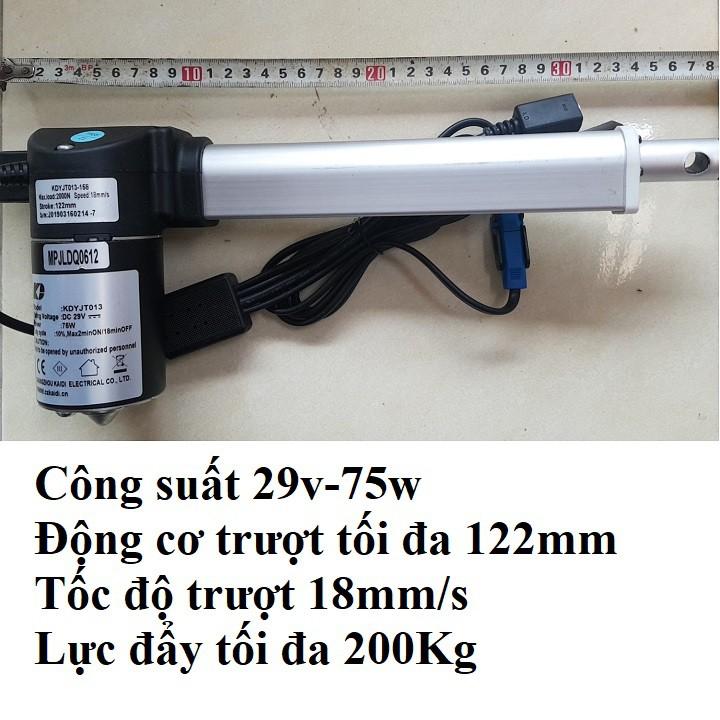 Loại thứ 5: 29VDC-75w-trượt tối đa 122mm, tốc độ trượt 18mm/s nặng 1.3kg, lực đẩy 200Kg