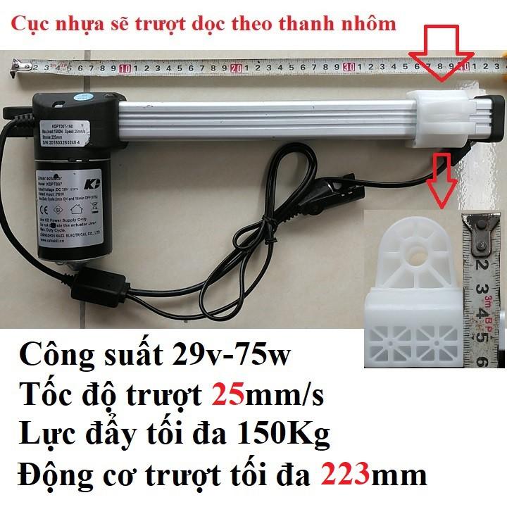 Loại thứ 6: 29VDC-75w-trượt tối đa 223mm, tốc độ trượt 25mm/s nặng 1.3kg, lực đẩy 150Kg