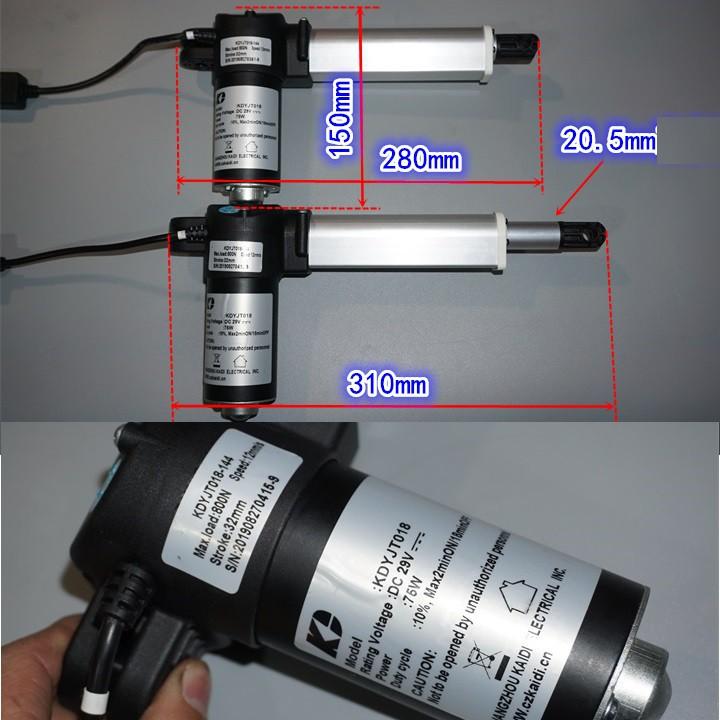 Loại thứ 1: 29VDC-75w-trượt tối đa 32mm, tốc độ trượt 10mm/s, nặng 1.1kg, lực đẩy có 2 loại 80Kg hoặc 200Kg
