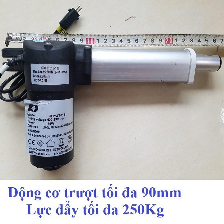 Loại thứ 3: 29VDC-75w-trượt tối đa 90mm, tốc độ trượt 13mm/s, nặng 1.2kg, lực đẩy 250Kg