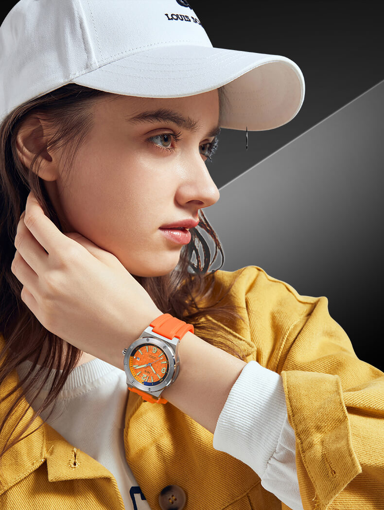 Thông số kỹ thuật ● Dây đeo bằng nhựa ● Mặt kính nhựa ● Khả năng chống nước ở độ sâu 100 mét ● Độ chính xác: ±30 giây một tháng ● Tuổi thọ pin xấp xỉ: 10 năm đối với pin CR2025 ● Kích thước vỏ : 51.3 × 51.1 × 14.8 mm ● Tổng trọng lượng : 49g