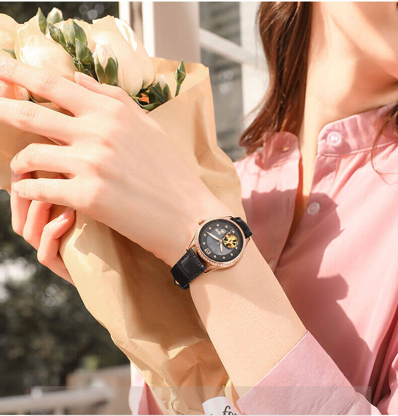 THÔNG SỐ SẢN PHẨM: Thương hiệu :Kassaw Mã sản phẩm : K990-2 Giới tính : Nữ Kiểu máy : Đồng hồ cơ (Automatic) Đường kính mặt : 33 mm Độ dày : 10 mm Chất liệu