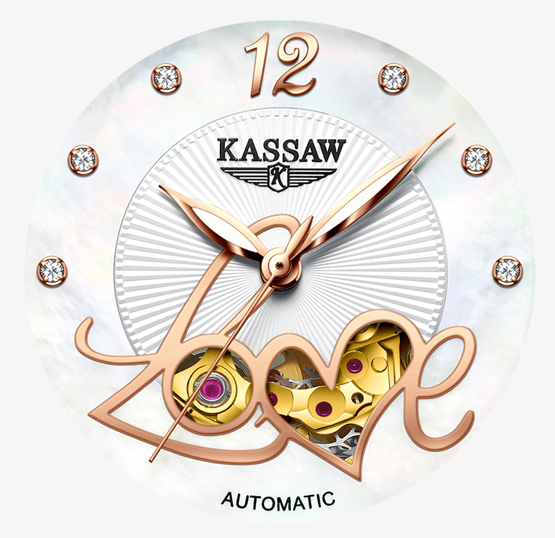 +Chiếc đồng hồ cơ Kassaw Lady Rose chắc chắn sẽ làm hài lòng các cô nàng cá tính, thanh lịch và rất biết "chơi" đồng hồ! +Thiết kế hở tim phá cách kết hợp khéo