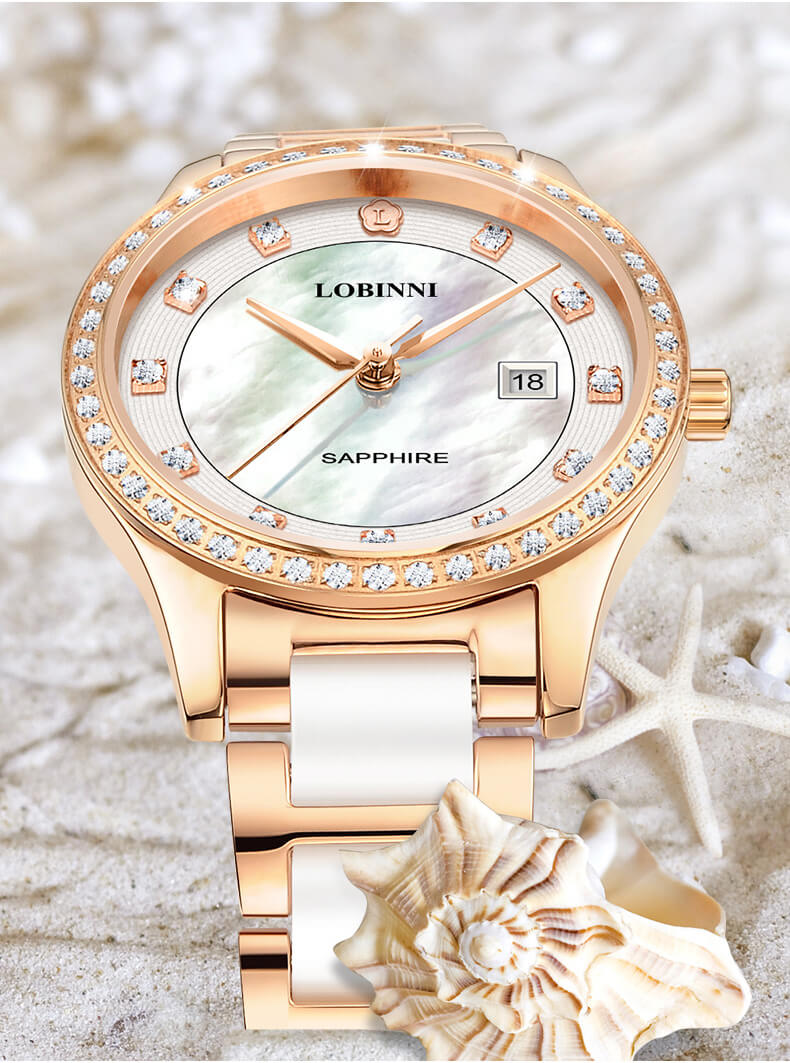 Đồng hồ nữ chính hãng Lobinni Thụy Sỹ Thiết kế hiện đại,sang trọng dành cho phái nữ Thời gian trữ cót lâu lên đến 40h Chống nước 5ATM, Kính sapphire Toàn bộ máy được làm