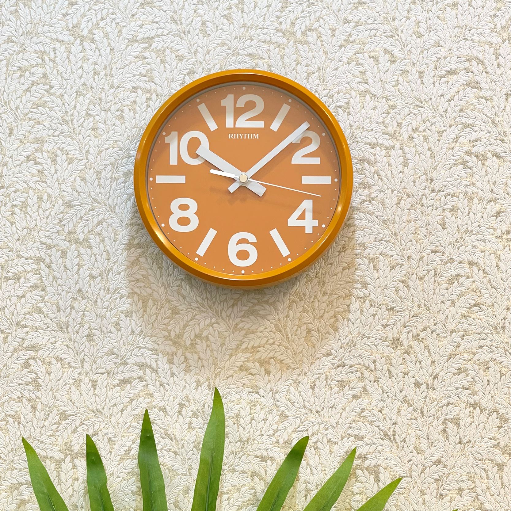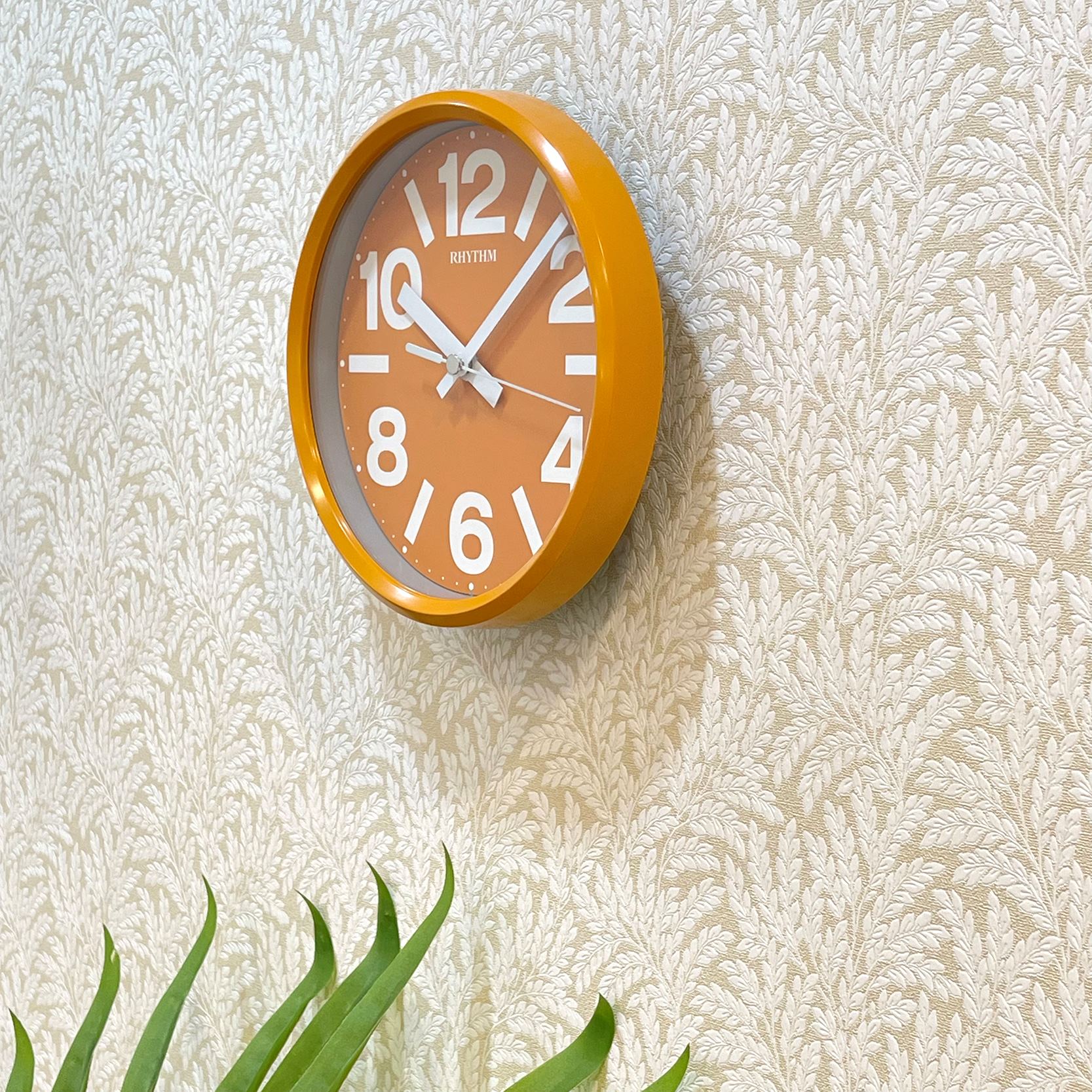 Đồng hồ treo tường Nhật Bản Rhythm CMG876NR18, dùng pin (AA x 1), vỏ nhựa màu vàng / kết hợp mạ vàng sang trọng. Kích thước 31.5 x 4.5cm, trọng lượng 625g. Máy kim trôi