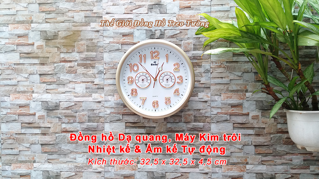(*) Nhiệt ẩm kế tự động sử dụng nguyên lý co dãn của lò so kim loại dựa trên điều kiện thời tiết để hiển thị nhiệt độ và độ ẩm xung quanh nơi treo đồng hồ. Không nên sử dụng cho mục đích khác. Đây cũng không phải là dụng cụ nhiệt ẩm kế chuyên dụng. Mức sai số của Nhiệt kế là ± 2oC. Mức sai số của Ẩm kế là ± 10%.