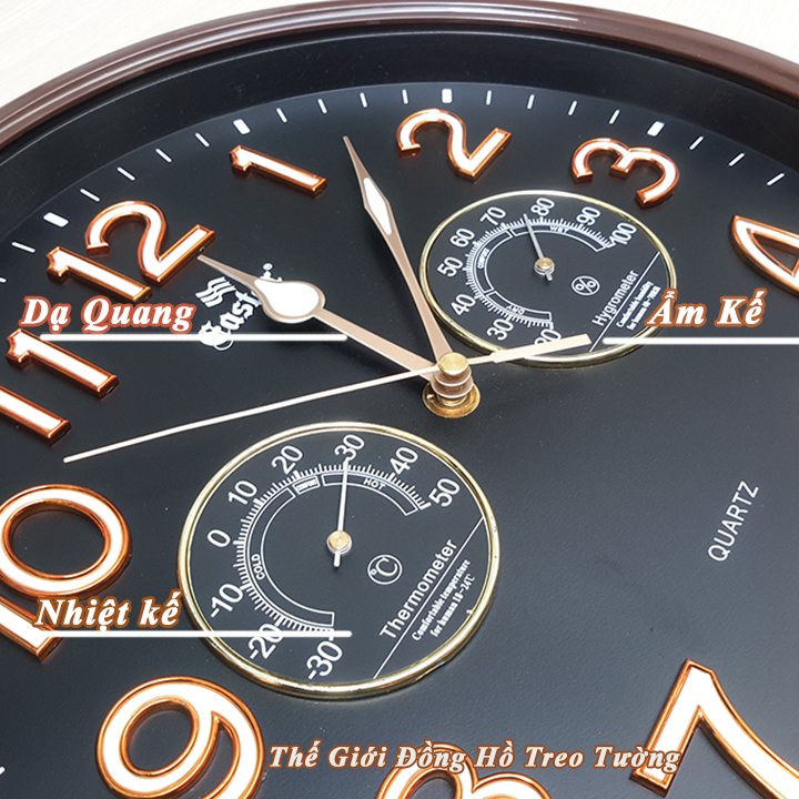 ✨Đồng Hồ Treo Tường Có DẠ QUANG Và NHIỆT ẨM KẾ CƠ (Không Dùng Pin) - Máy EASTAR KIM TRÔI - SỐ NỔI 3D - Tặng Pin Maxell