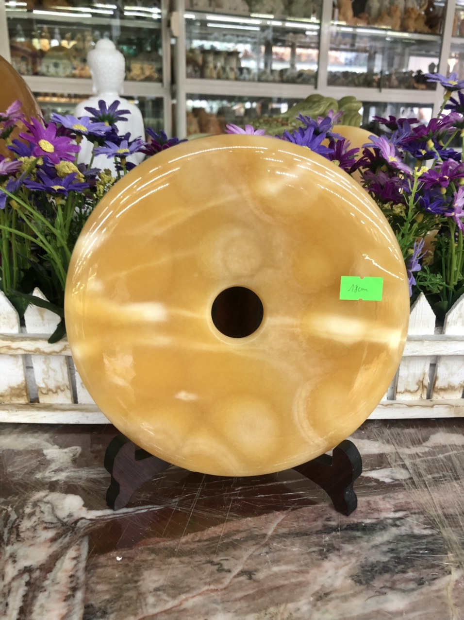 Mua tại TiktokChất liệu: Đá ngọc hoàng long Kích thước: Đường kính 18 cm và 22 cm Khối lượng: 920g và 1,5 kg Từ thời xưa xưa, tiền xu được sử dụng với hình dạng tròn tượng trưng cho trời, giữa là hình vuông tượng trưng cho đất. Trời ngoài đất trong tượng trưng cho quẻ Thái là sự thịnh vượng. Hình tròn mang biểu tượng của sự chu toàn, suôn sẻ trong công việc và cuộc sống Ngày nay, nhiều người có sở thích sưu tầm những đồng tiền cổ, tuy nhiên đồng tiền cổ ngày càng hiếm nên người ta đúc lại đồng tiền này bằng vàng, bạc (gọi là đồng điếu) là biểu tượng của nguồn tài lộc và của cải. Đồng điếu được chế tác từ các loại đá tự nhiên mang nguồn vượng khí, cát khí vượng gia chủ. Cách sử dụng: Để Bàn Làm Việc, Phòng Khách, Trưng Bày, Quầy Lễ Tân, Quà Tặng Ý Nghĩa.