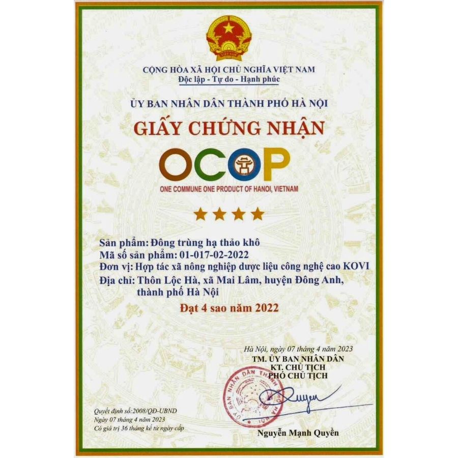 Đông Trùng Hạ Thảo KOVI tự hào là một trong số ít công ty tại Việt Nam có đầy đủ giấy chứng nhận như: