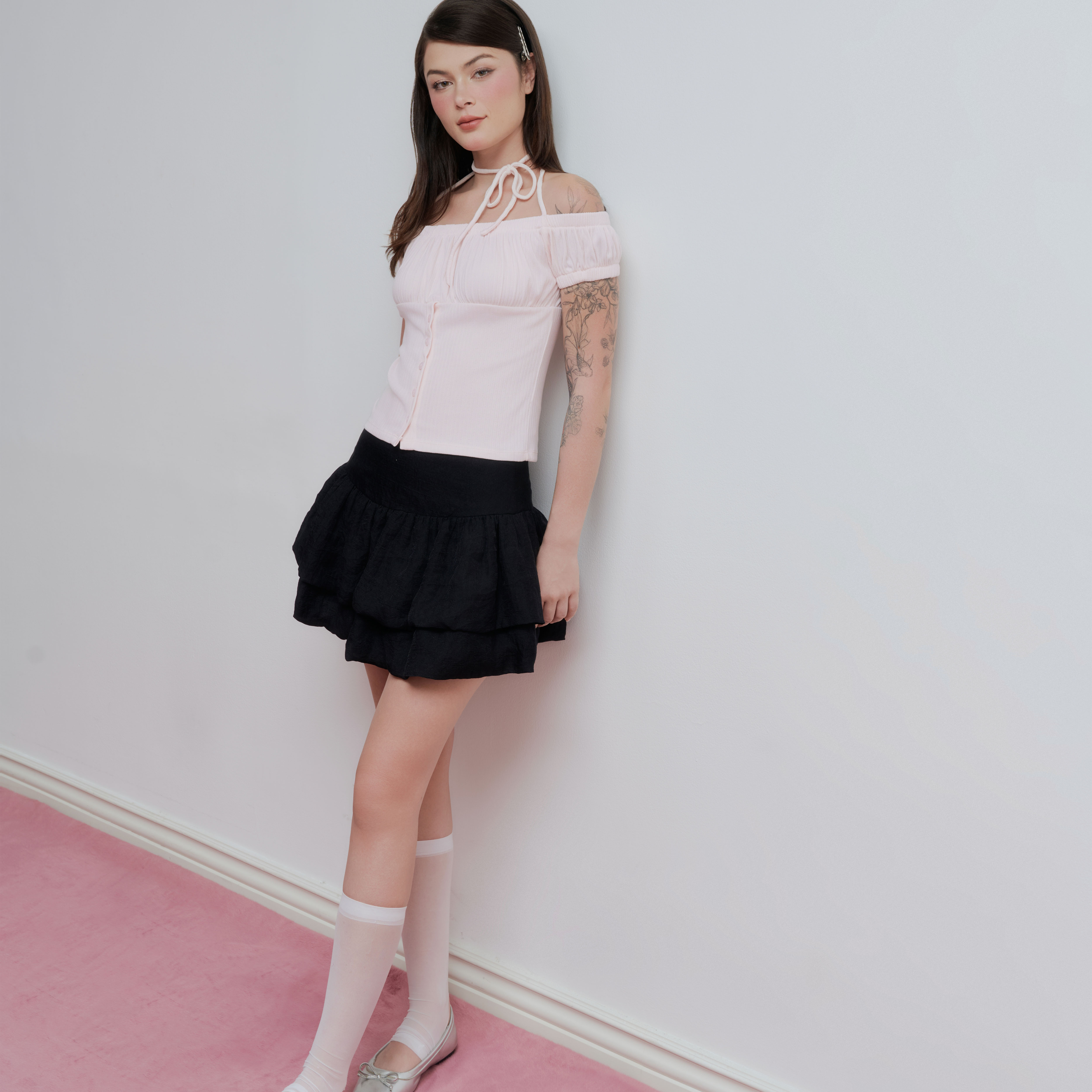 CHI TIẾT SẢN PHẨM - Sản phẩm : Chân váy ngắn dáng bí dáng xòe bồng bềnh có lót quần bên trong xinh xắn mùa hè Amara Miều Est.2013 - Chất liệu : Kate Caro