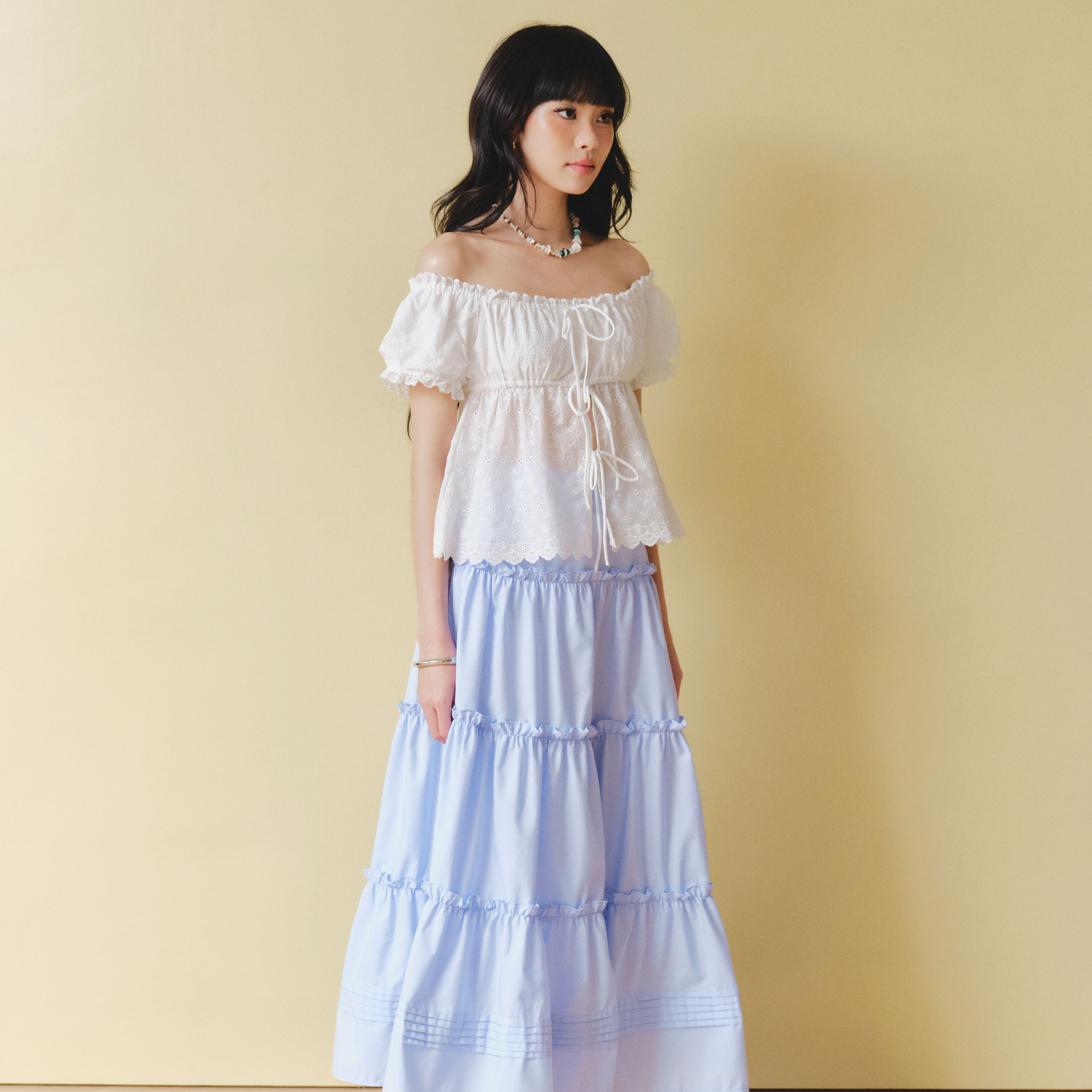 CHI TIẾT SẢN PHẨM - Sản phẩm : Chân váy dài chân chất vải cotton thêu có size dành cho nữ Gabrielle Miều Est.2013 - Chất liệu : Cotton Thêu - Màu sắc : TRẮNG