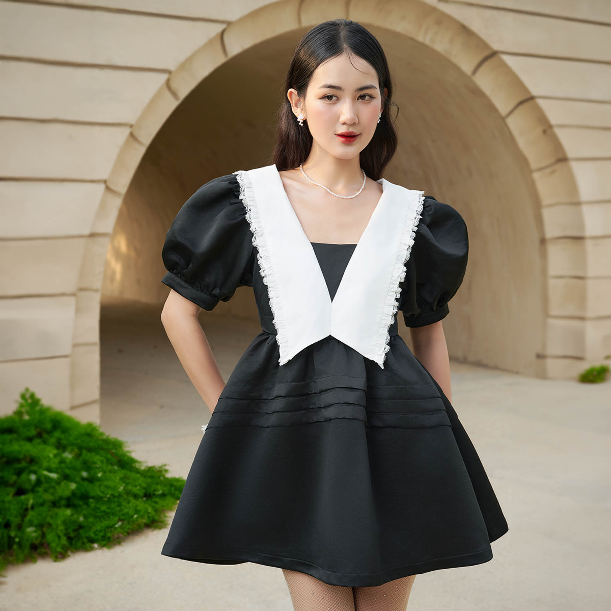 ✨DOTTIE - Đầm tay phồng phối lá cổ - D0571