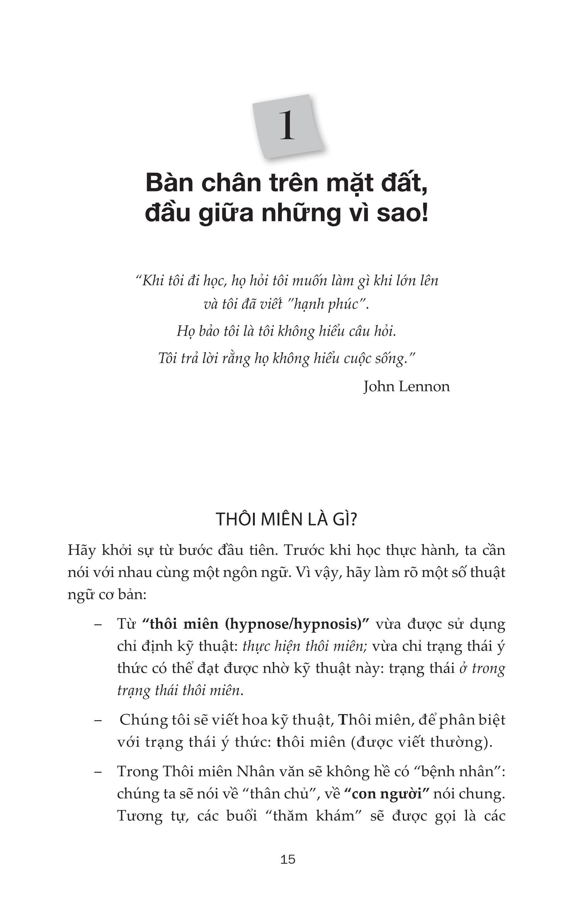 Cuốn sách đề cập đến Thôi miên trong ứng dụng trị liệu, nhằm giúp đỡ bản thân và người khác nhờ một phương diện đơn giản và miễn phí mà ai cũng sở hữu là Tâm trí.