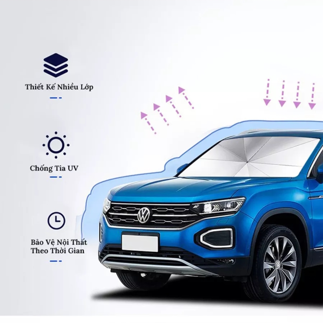Đặc điểm nối bật của bạt chống nóng kính xe này là gì ?? Thiết kế đơn giản, nhỏ gọn rất thuận tiện với cccm không thích dùng bạt phủ Chất liệu 3D không thấm