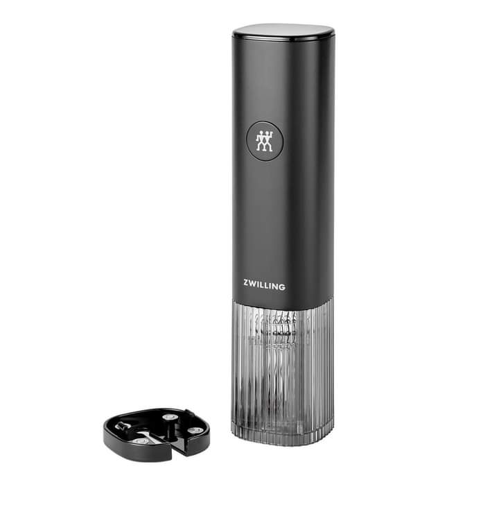 Với dụng cụ mở rượu Zwilling Enfinigy, bạn có thể mở chai rượu một cách dễ dàng chỉ bằng một nút nhấn. Với thao tác một chạm, bạn có thể loại bỏ giấy bạc và