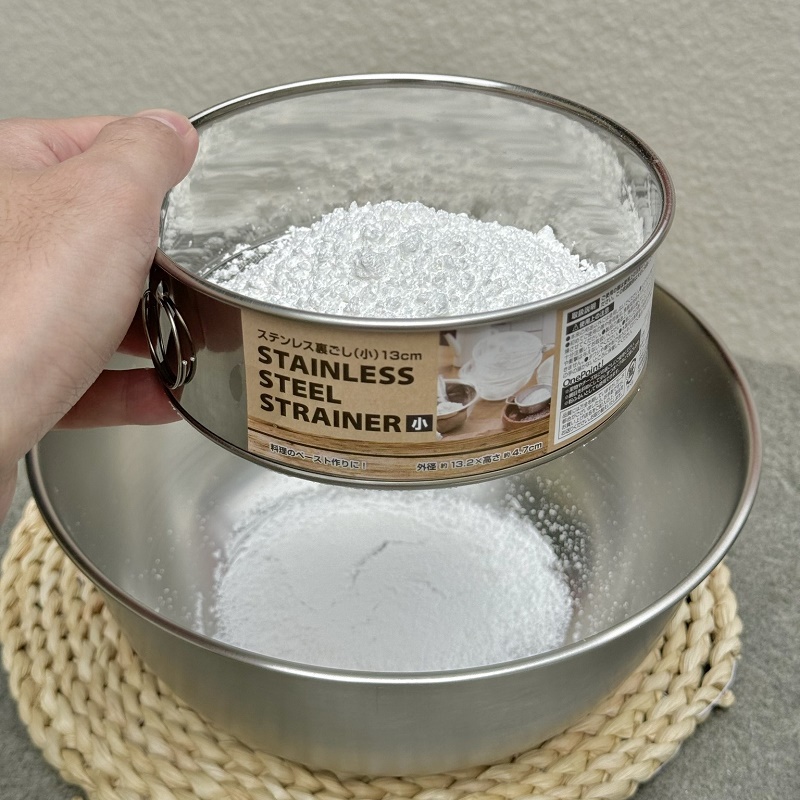 Thiết kế với chất liệu inox chắc chắn, tấm lưới đan nhỏ đều tinh tế, giúp giải quyết được tình trạng bột bị vón cục không mong muốn
