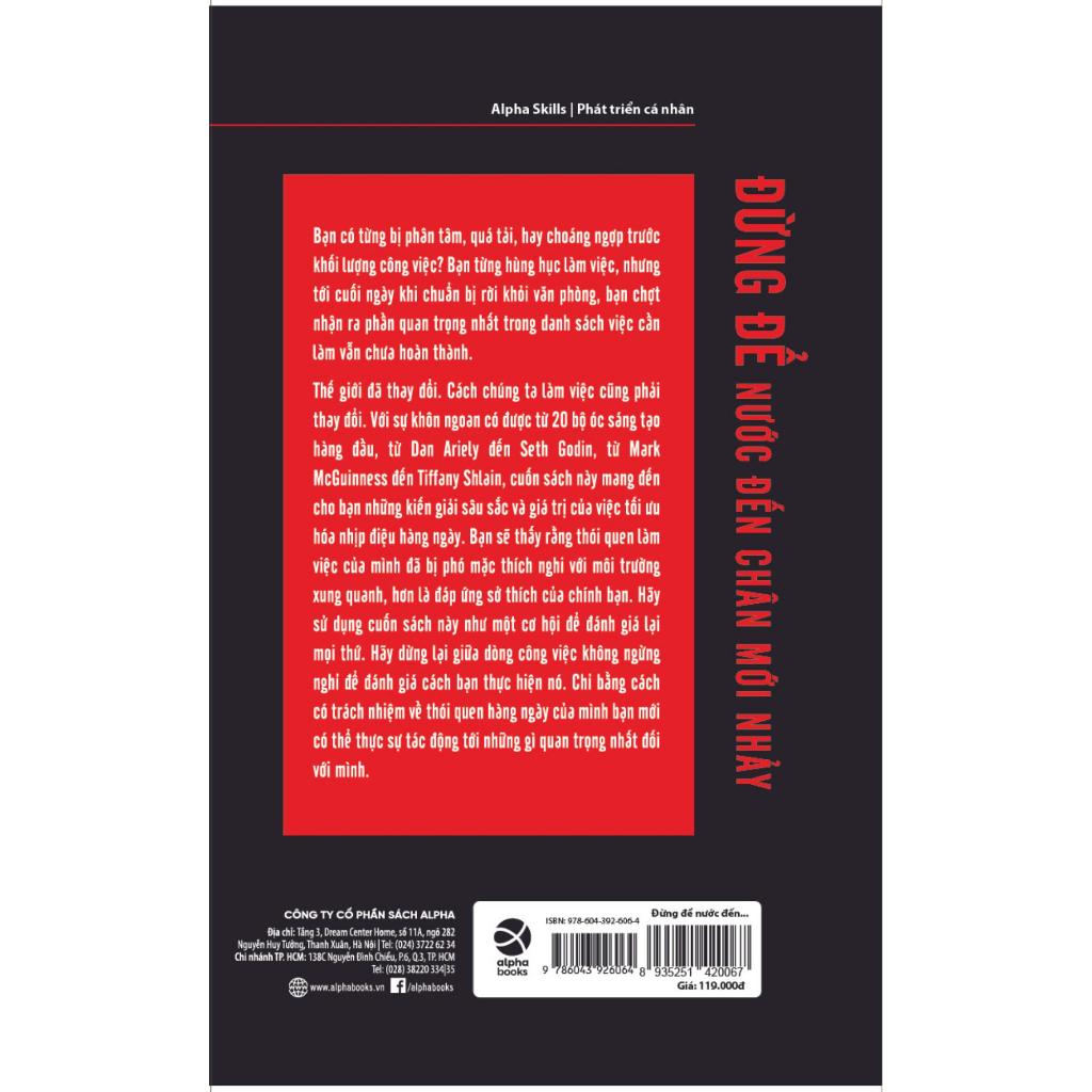 Bạn có từng bị phân tâm, quá tải, hay choáng ngợp trước khối lượng công việc? Bạn từng hùng hục làm việc, nhưng tới cuối ngày khi chuẩn bị rời khỏi văn phòng, bạn chợt nhận ra phần quan trọng nhất trong danh sách việc cần làm vẫn chưa hoàn thành. Thế giới đã thay đổi. Cách chúng ta làm việc cũng phải thay đổi. Với sự khôn ngoan có được từ 20 bộ óc sáng tạo hàng đầu, từ Dan Ariely đến Seth Godin, từ Mark McGuinness đến Tiffany Shlain, Đừng để nước đến chân mới nhảy mang đến cho bạn những kiến giải sâu sắc và giá trị của việc tối ưu hóa nhịp điệu hàng ngày.