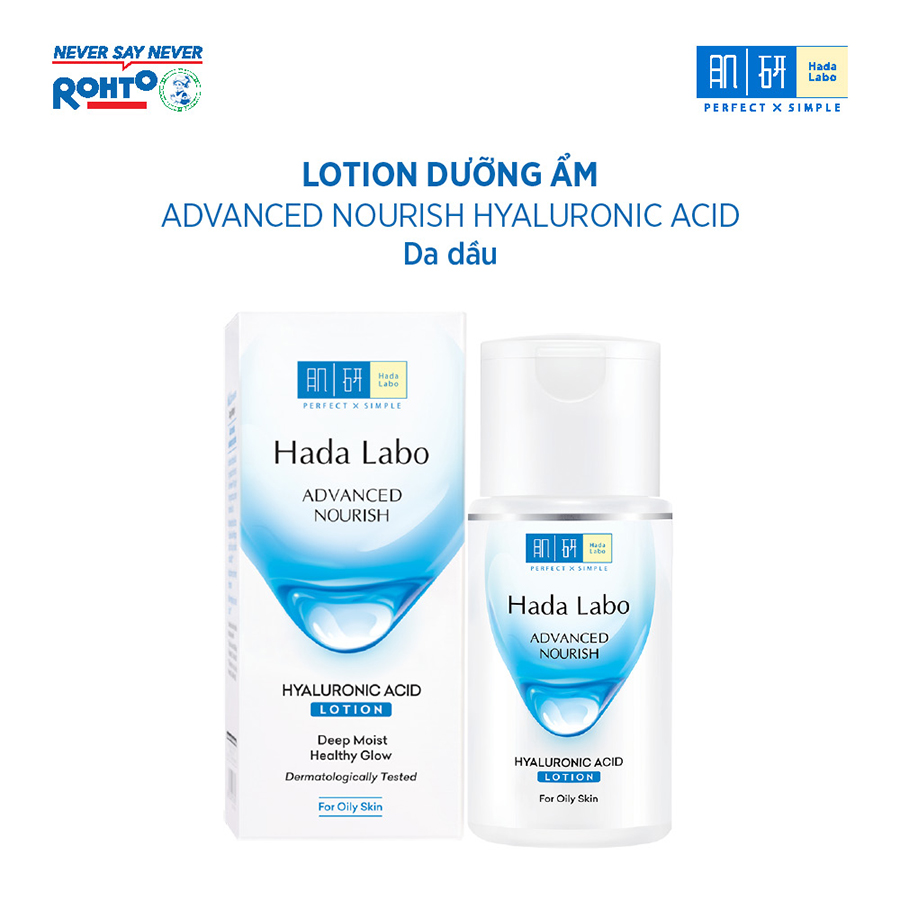 - Nên dùng kết hợp dung dịch dưỡng ẩm Hada Labo với Kem rửa mặt/Kem dưỡng ẩm Hada Labo ADVANCED NOURISH để đạt hiệu quả tối ưu. Đối tượng sử dụng: Dành cho da dầu và hỗn hợp thiên dầu Thông tin thương hiệu:
