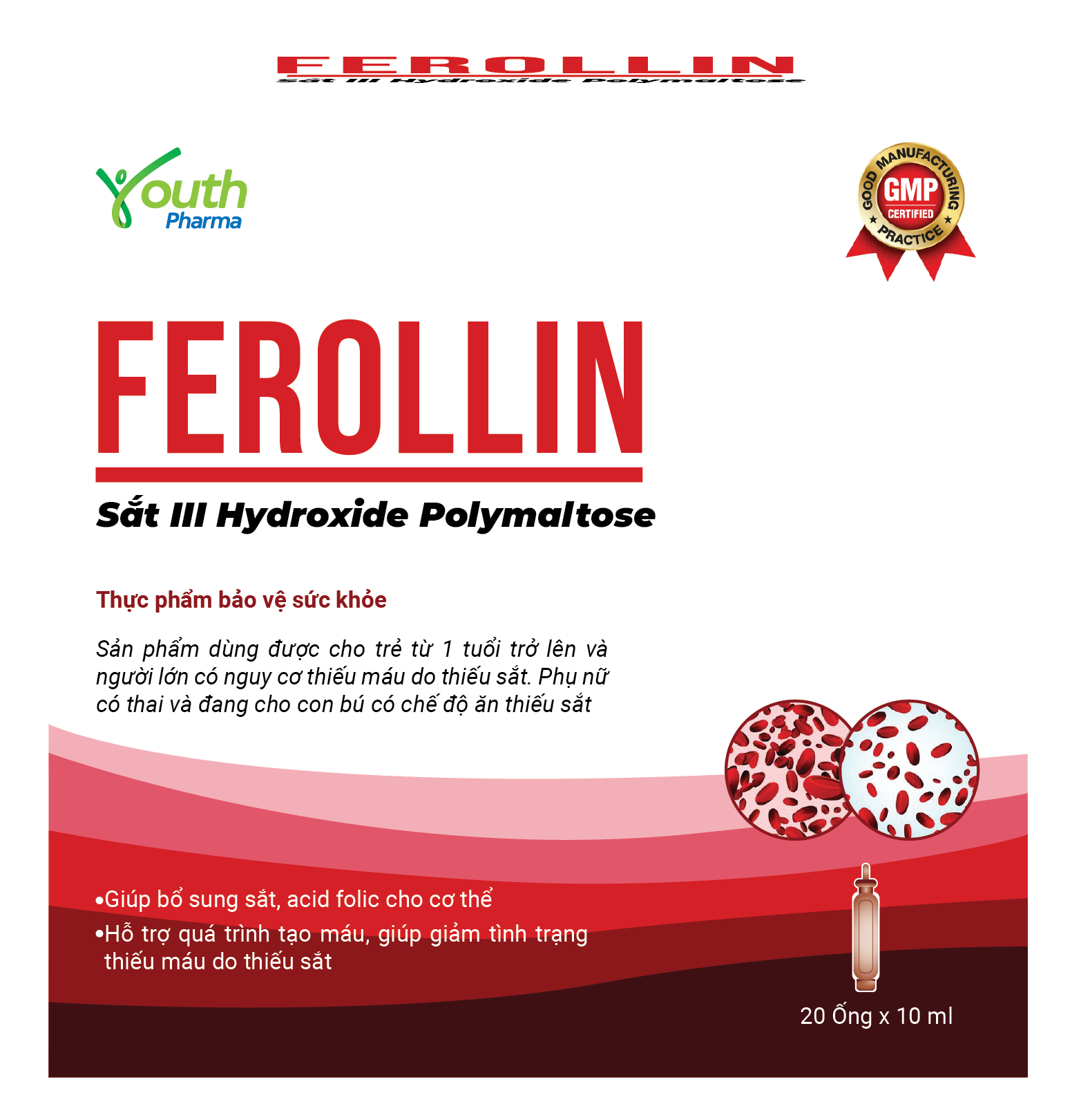 ✨Dung Dịch Ferollin Youth Pharma Bổ Sung Sắt Hỗ Trợ Qúa Trình Tạo Máu Hộp 20 Ống