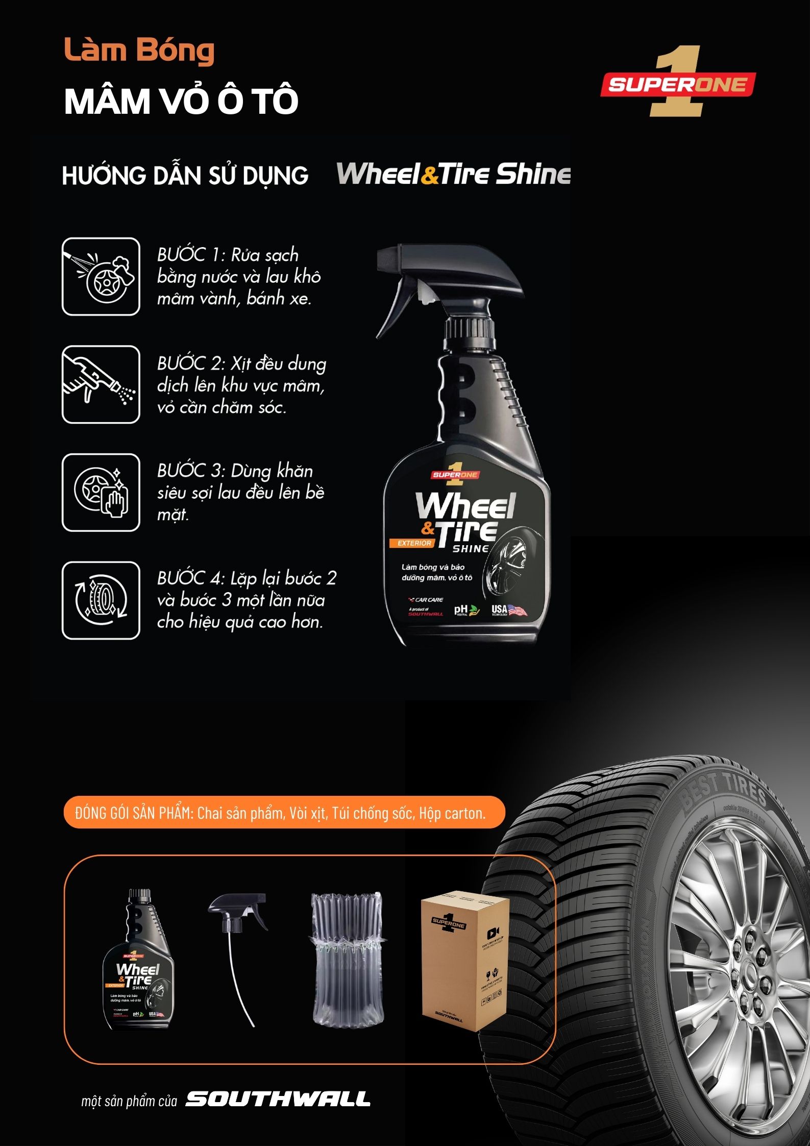 ✨Dung Dịch Làm Bóng Mâm Và Vỏ Ô Tô SUPERONE Wheel and Tire Shine - EXTERIOR SOUTHWALL A205