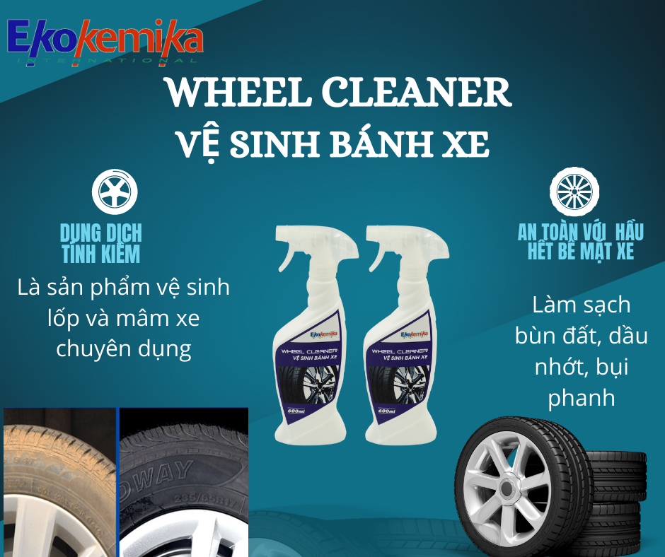 Mua tại TiktokDUNG DỊCH VỆ SINH BÁNH XE - LỐP XE EKOKEMIKA WHEEL CLEANER Dung tích: 600ml Đóng gói: 12 chai/ thùng Giá bán: 84.000₫/chai WHEEL CLEANER là sản phẩm vệ sinh lốp và mâm xe chuyên dụng, Dung dịch làm sạch lốp xe máy, ô tô bị ố vàng lâu ngày của thương hiệu nổi tiếng toàn cầu Ekokemika không chỉ là một sản phẩm thông thường mà còn là giải pháp hoàn hảo giúp bạn khôi phục vẻ đẹp tự nhiên của lốp xe và tăng cường sự an toàn khi lái xe.