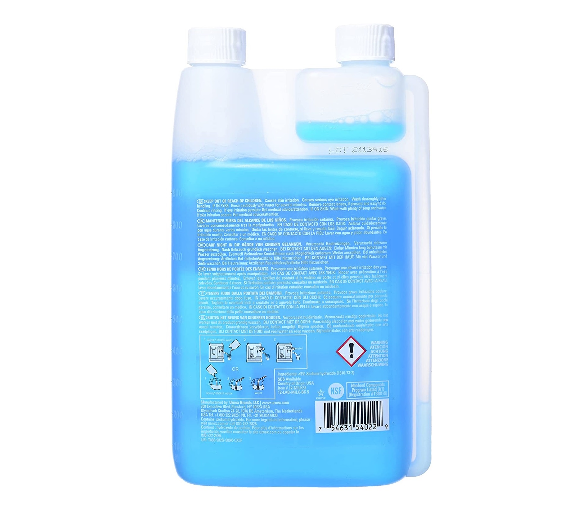 Giới thiệu Dung dịch vệ sinh vòi đánh sữa Urnex Rinza Liquid, giải pháp hiệu quả để phá vỡ và làm sạch váng sữa và chất béo tích tụ trên vòi đánh sữa, ca đánh sữa và dụng cụ tiếp xúc với sữa. Với chai 1 lít thiết kế hai ngăn, nó có thiết bị đo tích hợp tiện lợi cho phép bạn dễ dàng đo lượng chính xác cần thiết cho mỗi dùng. Chỉ cần pha loãng theo tỷ lệ 30 mL Rinza trên 500 mL nước và bạn đã sẵn sàng để sử dụng! Rinza Liquid không chỉ an toàn khi sử dụng trên các bộ phận của máy pha cà phê espresso mà còn giúp giảm sự tích tụ cặn liên quan đến việc sử dụng hàng ngày.