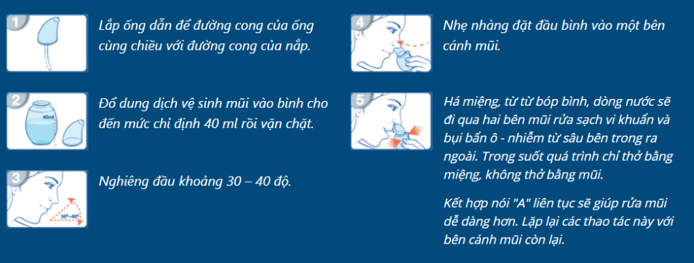 - Hướng dẫn sử dụng: Hãy tìm hiểu kỹ hướng dẫn sử dụng trước khi dùng. Sử dụng kèm với bình vệ sinh mũi chuyên dụng.