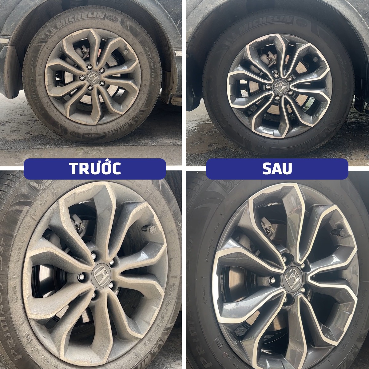 Bảo Dưỡng và Bảo Vệ: Ngoài việc làm sạch, dung dịch còn chứa các thành phần bảo dưỡng giúp tăng cường độ bóng và bảo vệ bề mặt lốp khỏi tác động của ánh nắng mặt trời và các yếu tố môi trường khác.