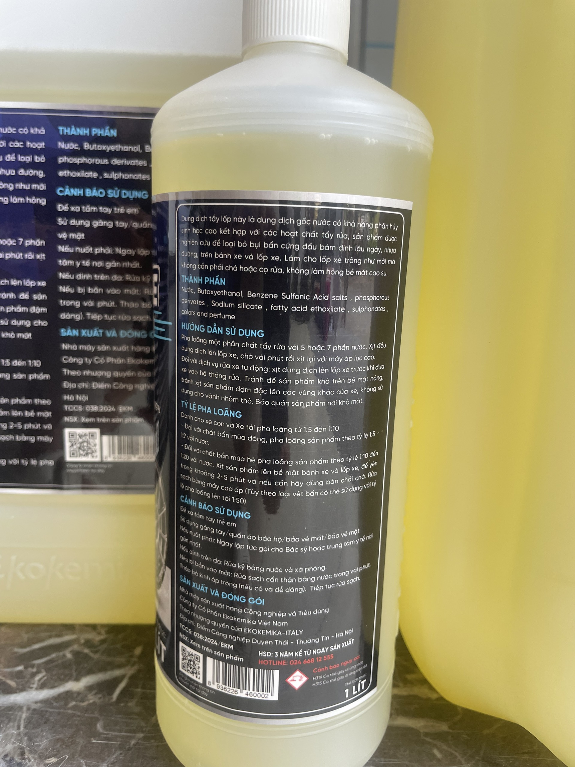 Hiệu Quả Tẩy Sạch: Dung dịch tẩy ố lốp của Ekokemika được thiết kế đặc biệt để loại bỏ hoàn toàn các vết bẩn, dầu mỡ và ố bám trên bề mặt lốp một cách nhanh chóng và dễ dàng.