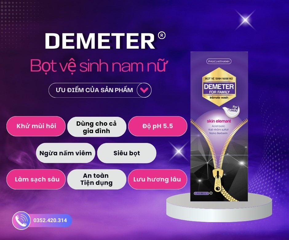 Bọt vệ sinh DEMETER dùng được cho cả nam và nữ là sản phẩm có thành phần dịu nhẹ, không gây kích ứng da, phù hợp với cả nam và nữ. Sản phẩm thường có độ pH cân bằng, giúp duy trì độ ẩm tự nhiên , ngăn ngừa khô rát.