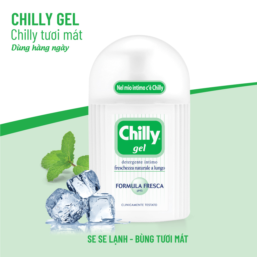 Mua tại TiktokDung dịch vệ sinh phụ nữ Chilly Gel Tươi Mát 200ml thích hợp cho làn da nhạy cảm. Thích hợp để dùng hàng ngày với độ pH 5 hoàn hảo, thích hợp với sinh lý phụ nữ. Được chứng nhận an toàn bởi Hiệp hội các Bác sĩ phụ khoa Ý. Đắm chìm trong sự mềm mại cùng công thức dịu nhẹ: