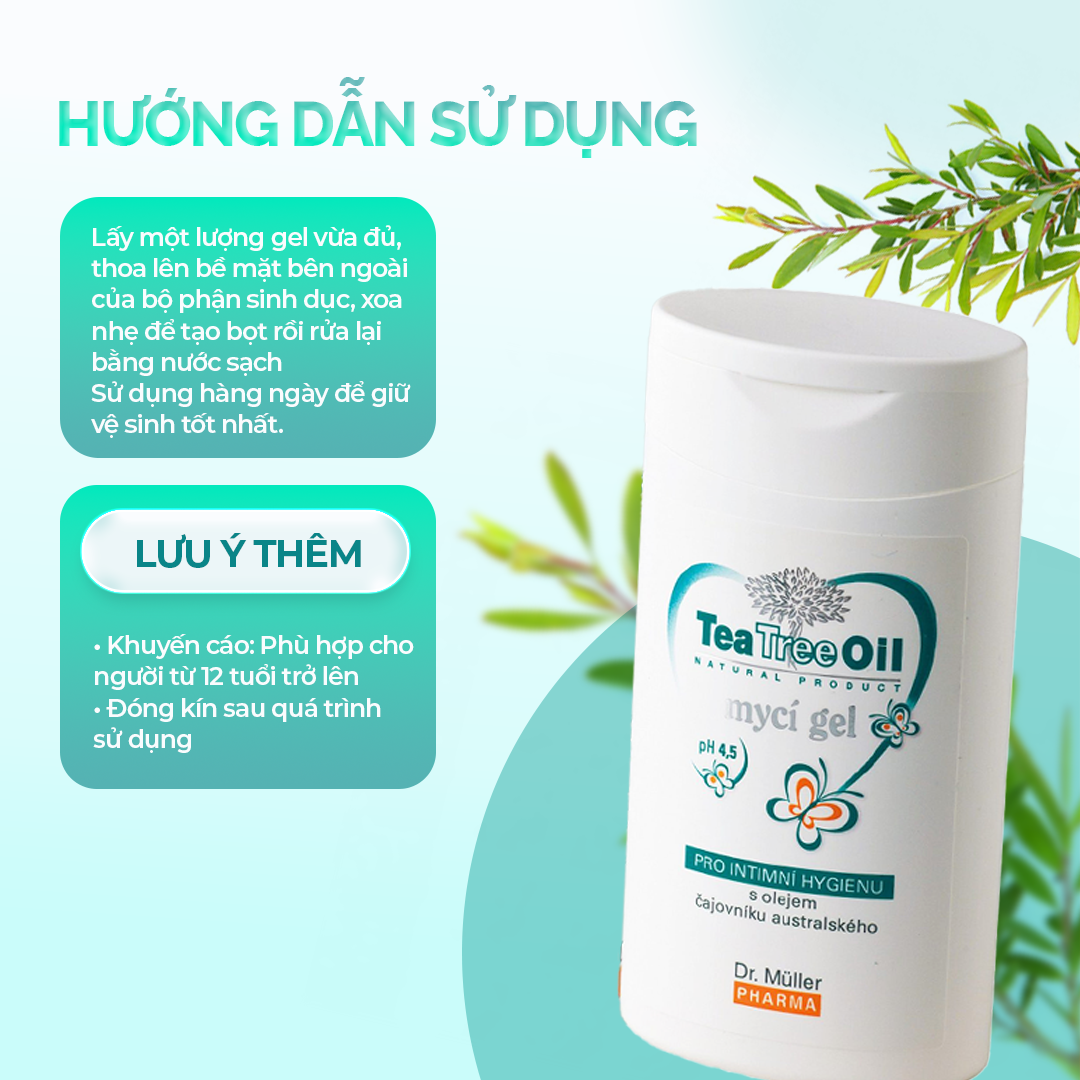 Mua tại TiktokGel dung dịch vệ sinh phụ nữ Dr. Muller Tea Tree Oil Wash Gel chiết xuất tinh dầu tràm trà Úc. THƯƠNG HIỆU : Dr.Muller XUẤT XỨ: Cộng Hòa Séc Hộp 200ml