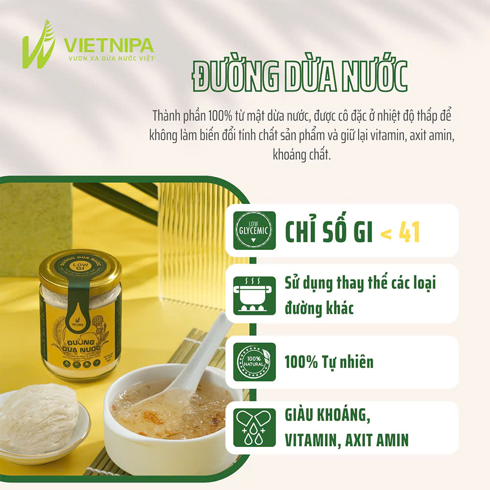 ✨Đường Dừa Nước Vietnipa 550g - Người Tiểu Đường, Ăn Kiêng, Hàm Lượng Vitamin Và Muối Khoáng Cao
