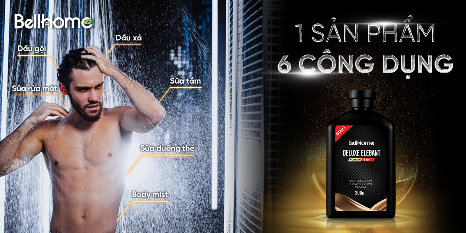 Mua tại TiktokSữa Tắm Gội Dưỡng Thể Bell Home 6 IN 1 Sữa tắm gội dưỡng thể Bell Home 6 IN 1 là sản phẩm đột phá với công thức chuyên biệt dành cho nam giới, kết hợp 6 công dụng trong một sản phẩm. Với sự ra mắt gần đây, sản phẩm đã nhanh chóng trở thành hiện tượng trên nhiều diễn đàn và mạng xã hội, khẳng định sức hút của thương hiệu nổi tiếng này. Thương Hiệu Cao Cấp