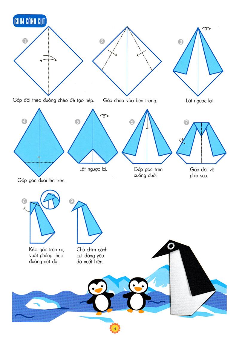 Với từng quyển, bé sẽ học cách gấp những đồ vật, con vật đơn giản nhất, từ phong bao, củ cà rốt… đến những hình phức tạp với nhiều đường gấp, cần nhiều sự tưởng tượng hơn như con cua, giỏ đựng hoa quả, lạc đà Mỗi trang sách là những hướng dẫn tỉ mỉ, bé chỉ cần làm lần lượt theo các bước. Cuối cùng, bé đã có một sản phẩm hoàn thiện với màu sắc sống động, ngộ nghĩnh.