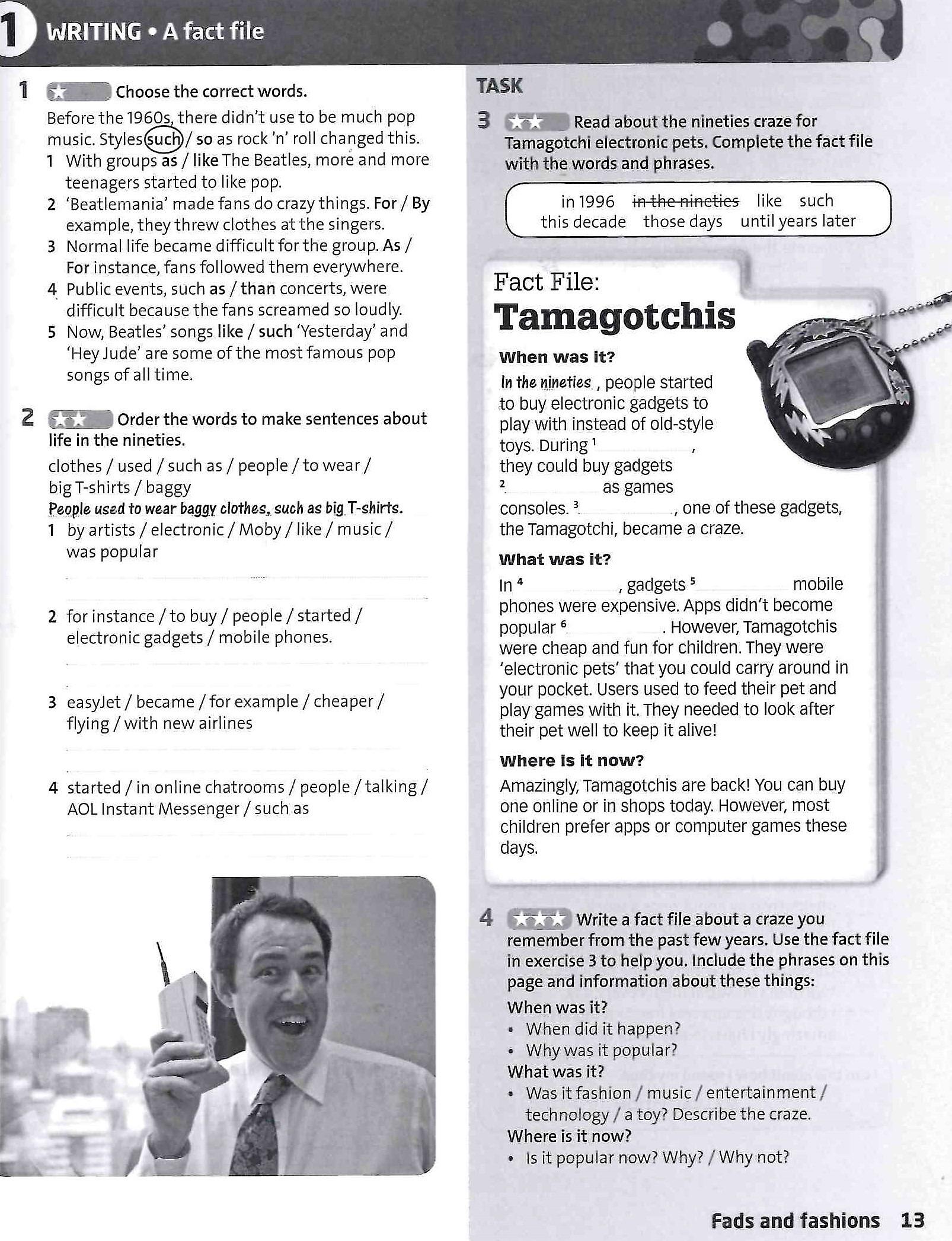 The Workbook includes exercises in grammar, vocabulary and skills, which mirror the language and skills work in the Student's Book pages.