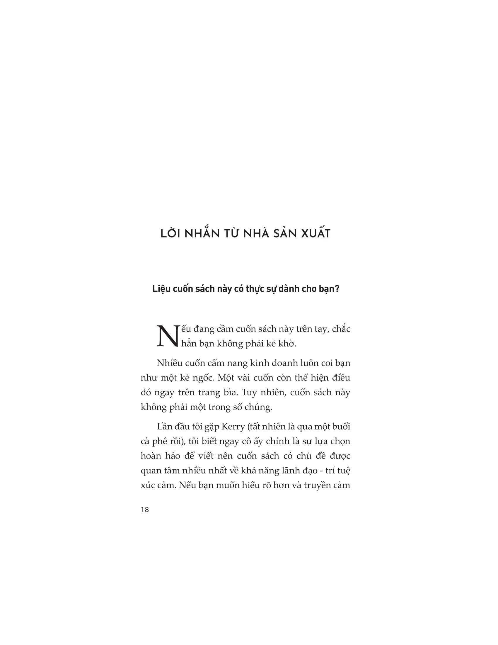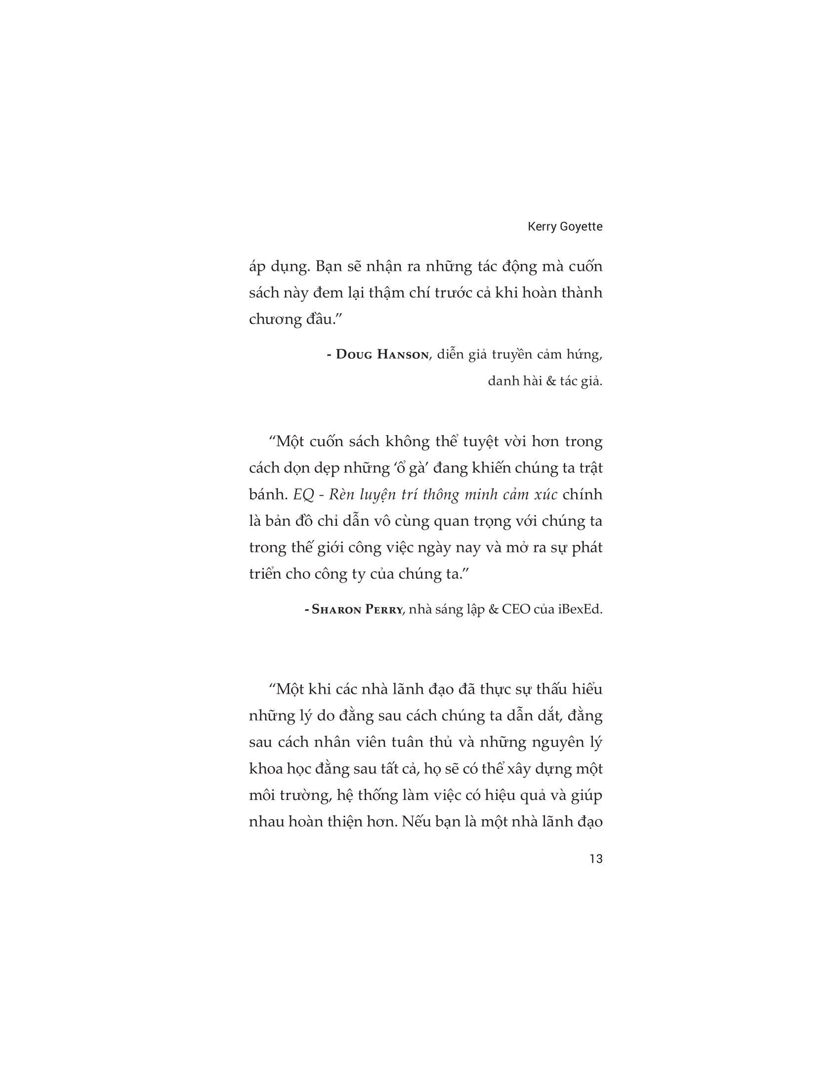 Trong cuốn sách EQ – Rèn luyện trí thông minh cảm xúc, bạn đọc sẽ tìm thấy những chỉ dẫn thực tiễn, giải trí mà vẫn hết sức sâu sắc về nguyên lý của chủ đề EQ. Bên cạnh đó là các phương pháp tận dụng trí tuệ cảm xúc để thấu hiểu bản thân, quản lý cảm xúc, thúc đẩy các mối quan hệ, từ đó đạt được nhiều thành công trong công việc và cuộc sống. Đây thực sự là một cuốn sách hữu ích với mọi người ở mọi vị trí trong công việc.