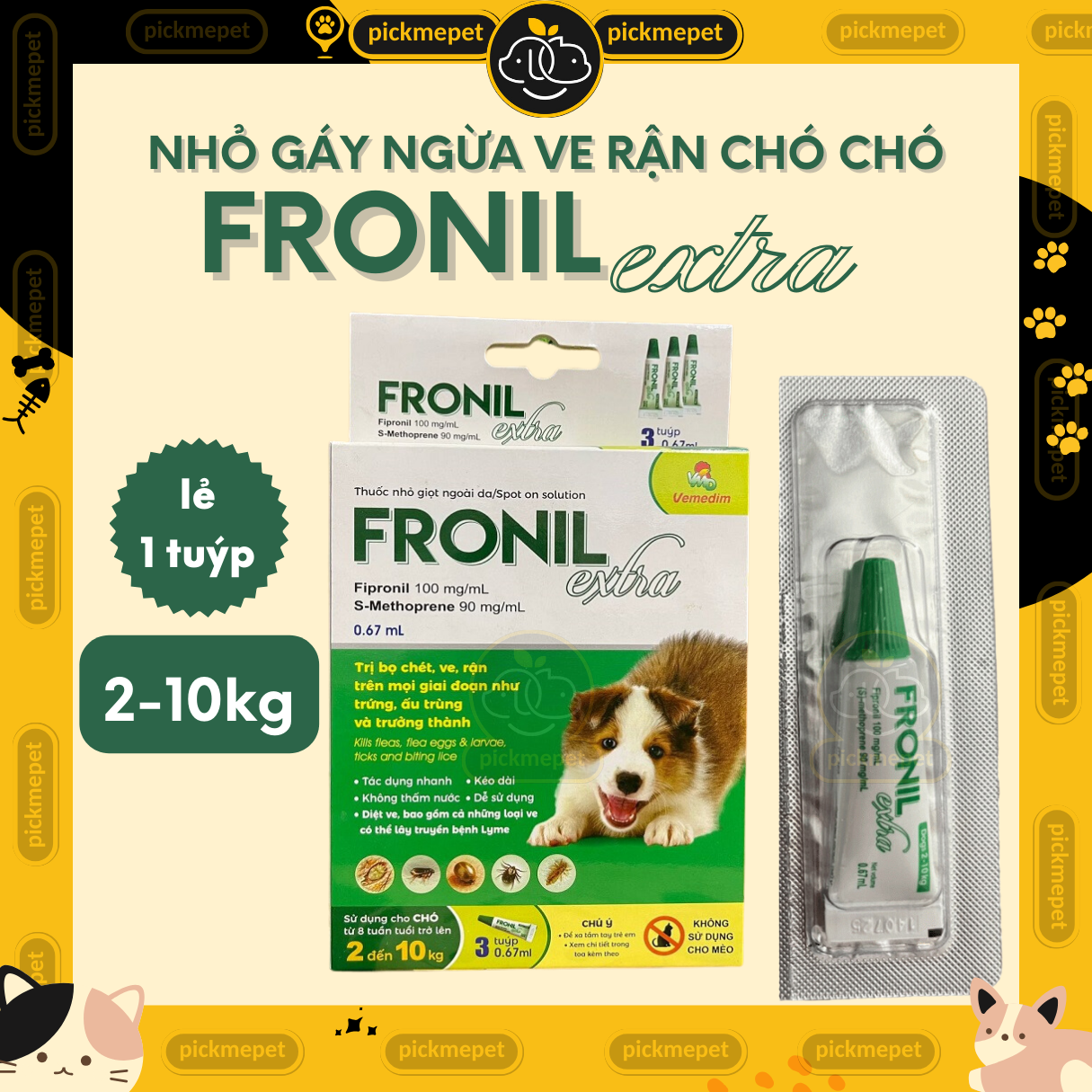 Mua tại TiktokFronil EXTRA mới - Nhỏ gáy ngừa ve rận, bọ chét cho chó Vemedim ĐẶC TÍNH: