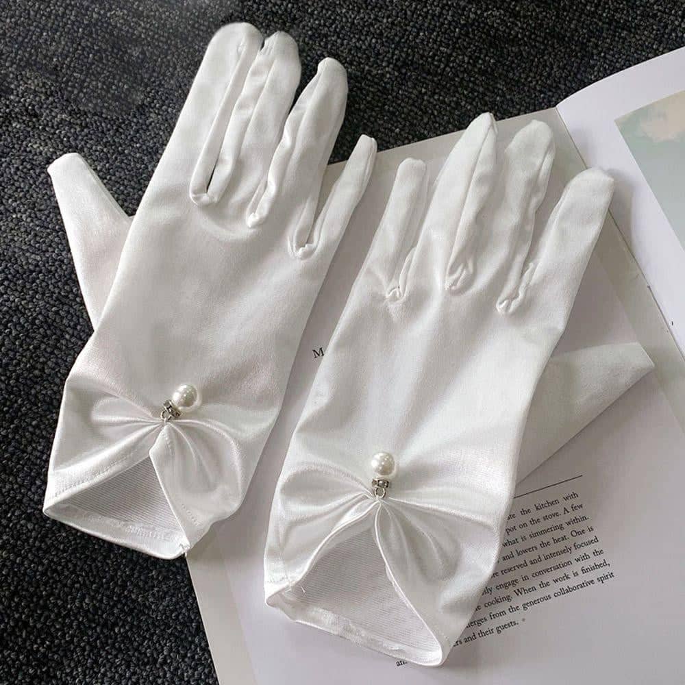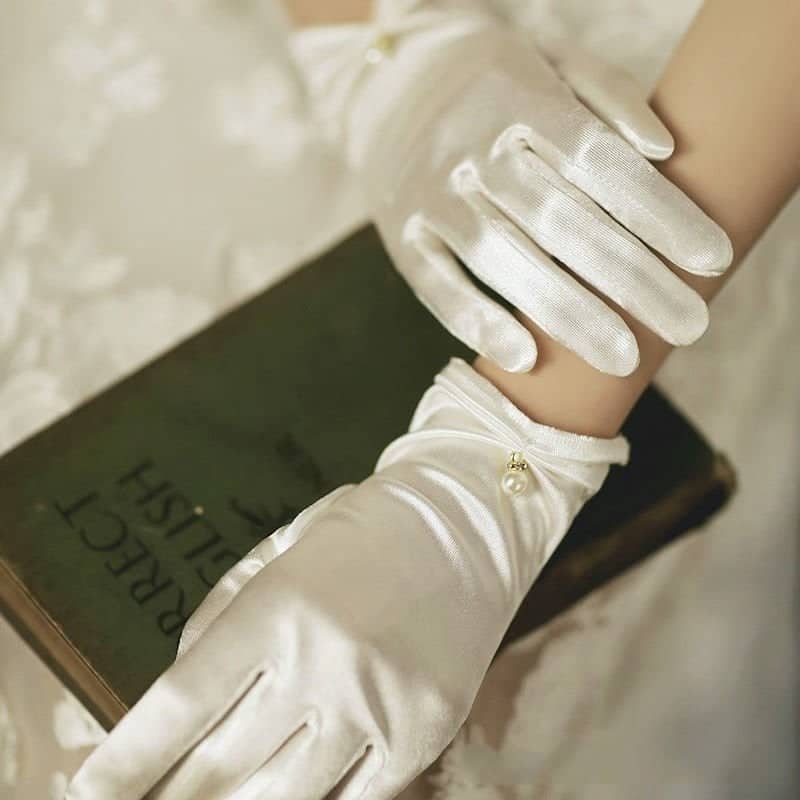 ✨Găng tay lụa bóng sang trọng màu trắng cho Cô dâu và Dạ hội, đi tiệc, sự kiện, lễ hội, chụp ảnh MS: 43246