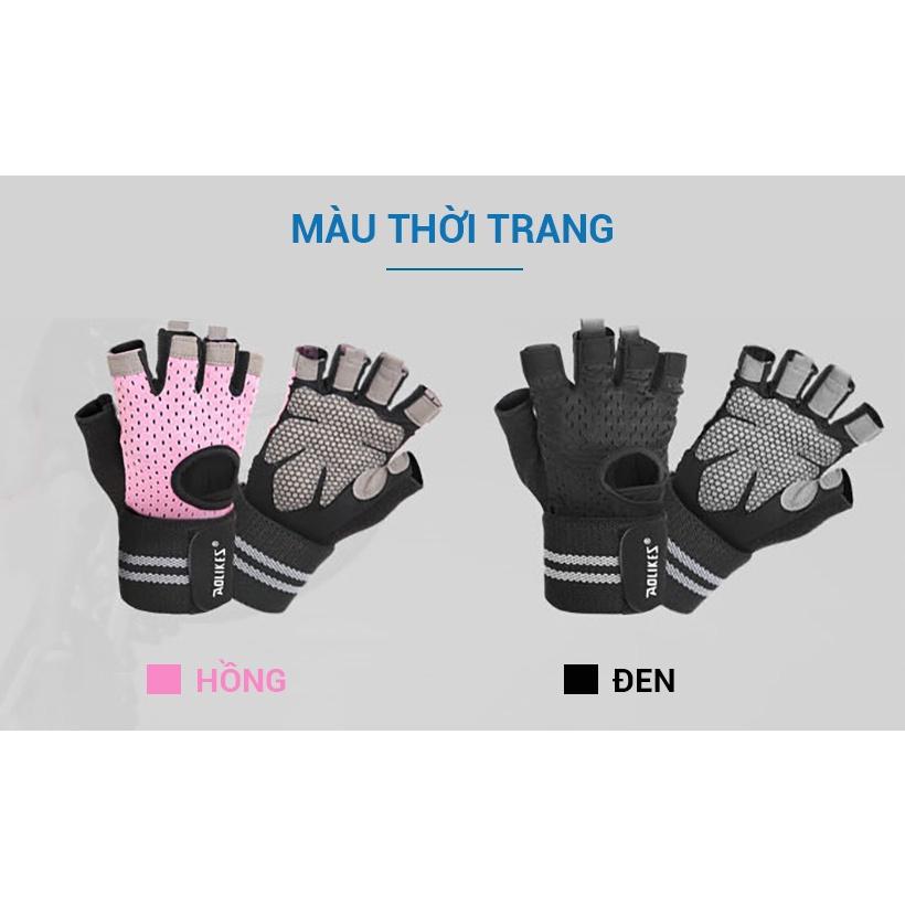 AOLIKES 113 - 1 đôi -Găng tay tập gym hở lưng có đệm lòng bàn tay chống trượt chuyên gym-chính hãng