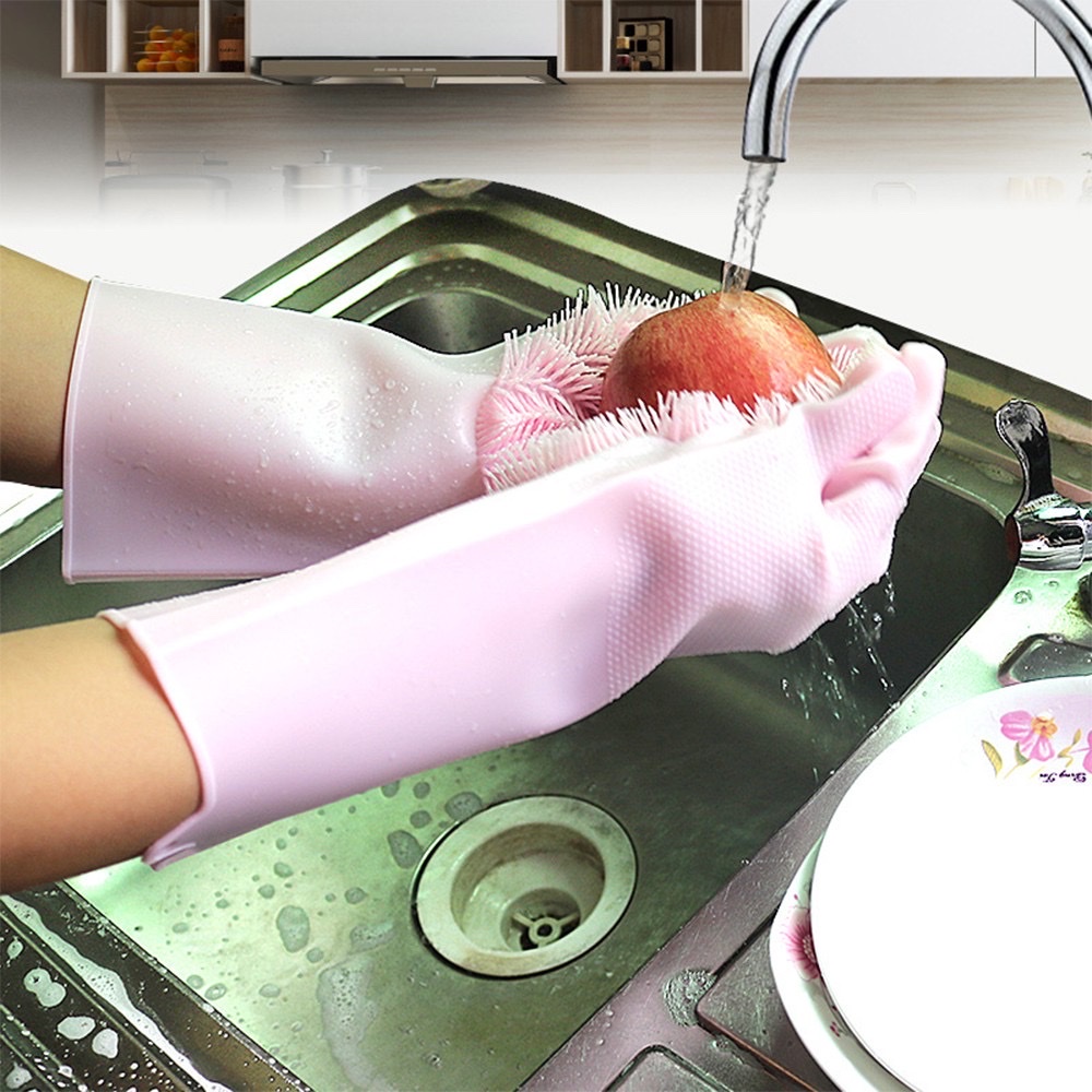 -Găng tay rửa chén silicon tạo bọt có gai - Bao tay rửa chén nhà bếp mềm mại , dẻo dai , chịu được nhiệt độ cao và không hại da tay rất tiện lợi
