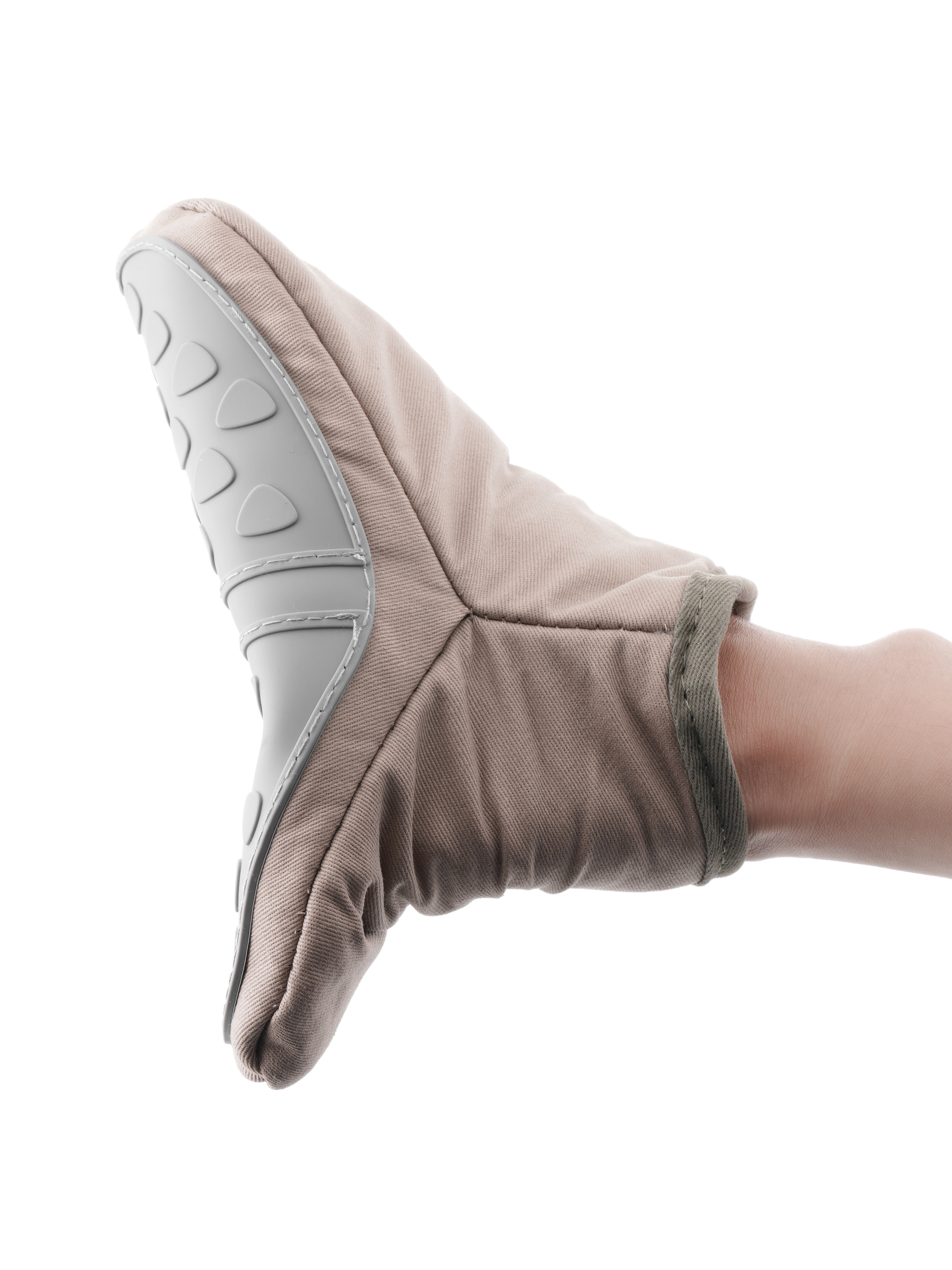 Găng tay silicone nhấc nồi kích thước : 195x125x20 màu sắc : nâu + xám chất liệu ; Silicone , Textile