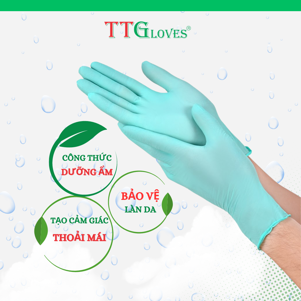 Găng Tay Nitrile Không Bột TTGloves Màu Xanh Lá Chuẩn Nhà Máy!