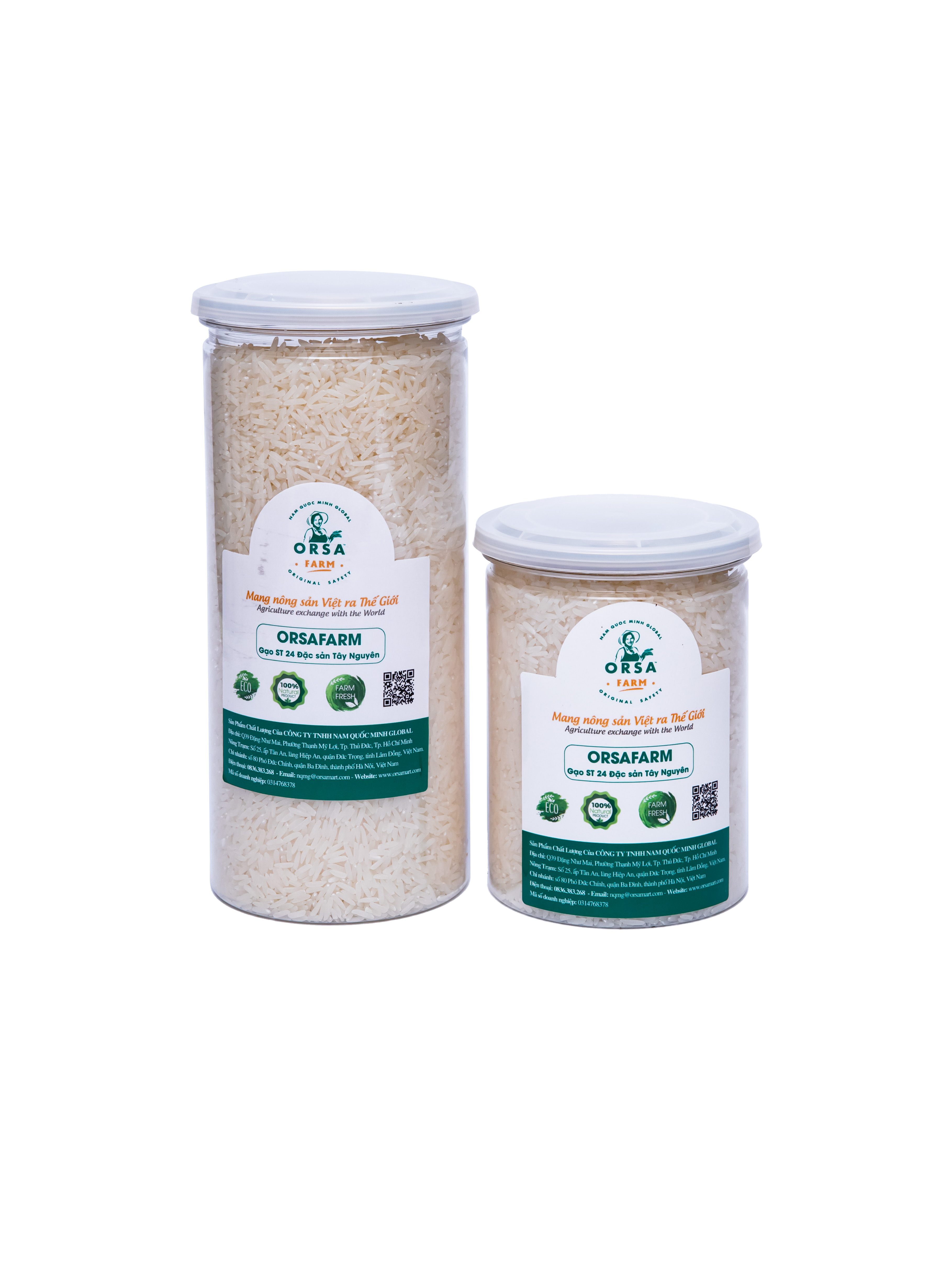 - Ngoài ra, có thể xay gạo OrSaFarm thành bột để chế biến những món ăn khác. ST24 OrSaFarm Buon Choah rice should be cooked between 1: 0.8 and 1: 1 water ratio. When left to cool, the OrSaFarm rice grains are still soft and supple, keeping the same fragrance as when they were still hot. Please do not rinse rice for too long as this will cause the loss of many nutrients in the newly cooked rice. Store your OrSaFarm rice in a dry, cool place avoiding moisture, strange odors, insects and pests. Please reseal tightly after opening OrSaFarm Rice bag or can + Hướng Dẫn Bảo Quản Gạo ORSAFARM : Bảo quản tốt nhất là dưới 15˚C, nơi thoáng mát, khô ráo. Với Nhiệt độ lạnh sẽ giữ được dưỡng chất và Vitamin của gạo. Gạo đựng trong hộp nhựa trong giúp quan sát được chất lượng gạo hướng hữu cơ bên trong, bao bì chuẩn VSATTP, và bảo quản tốt nhất dưỡng chất. Ngăn mát tủ lạnh hoặc nhiệt độ phòng máy lạnh là nơi lý tưởng để lưu trữ hiệu quả. ++ Bao bì sẵn có của ORSAFARM: Hộp nhựa trong 500 gram, 800gram, bao VSATTP 5kgs, 10kgs và 50kgs, (Hoặc theo yêu cầu Jumpo packing 500kgs, Jumpo packing 1.000kgs). Quy Cách Đóng Gói : túi nhựa PA (có tính chất dai, deo, trong rất an toàn cho sức khoẻ của Quý Khách). Túi và hộp nhựa chuẩn VSATTP. Túi có quai xách dễ dàng khi di chuyển.