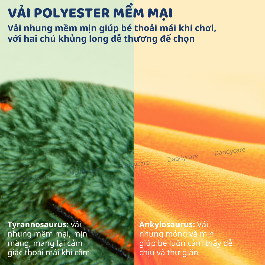 - VẢI POLYESTER MỀM MẠI: Vải nhung mềm và mịn giúp bé luôn cảm thấy dễ chịu và thư giãn trong suốt thời gian chơi.Có hai chú khủng long dễ thương để lựa chọn! Tyrannosaurus: vải nhung mềm mại, mịn màng, mang lại cảm giác thoải mái khi cầm Ankylosaurus: Vải nhung mỏng và mịn giúp bé luôn cảm thấy dễ chịu và thư giãn