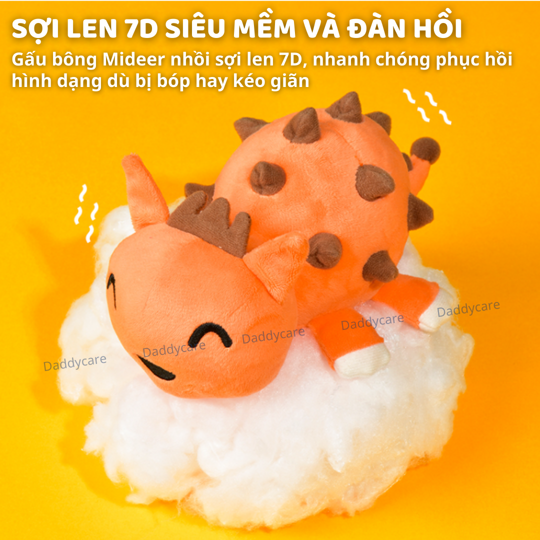 - SỢI LEN 7D SIÊU MỀM VÀ ĐÀN HỒI: Gấu bông Mideer được nhồi bằng sợi len 7D, giúp sản phẩm trở lại hình dạng ban đầu nhanh chóng, dù bé có bóp, kéo hay kéo giãn